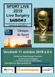 Live surgery saison 5, organisé par les chirurgiens de la Clinique du Sport Paris le 5 octobre à 8h